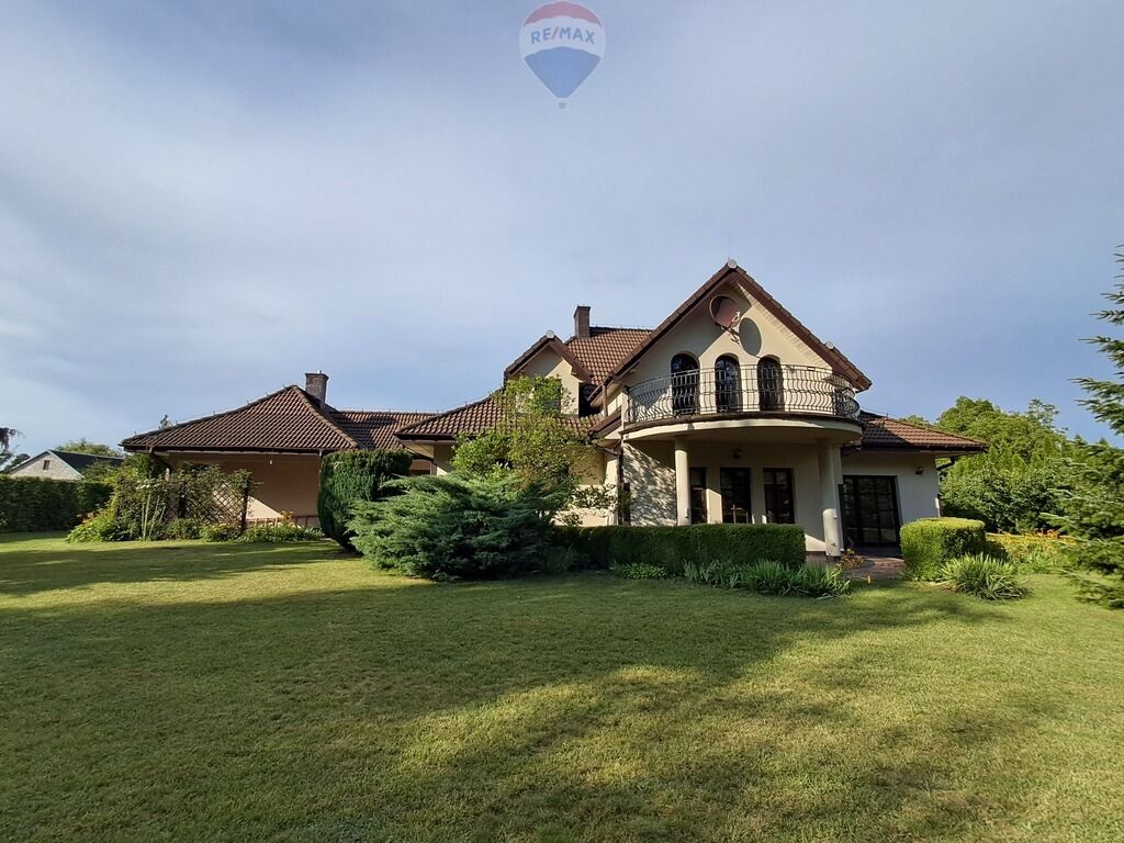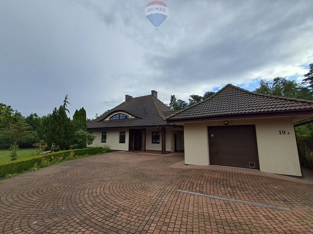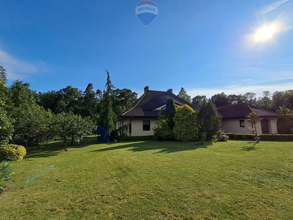 Dom usytuowany jest na dużej, pięknie utrzymanej działce o